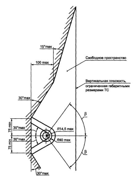Выход из этой зоны не должен быть затруднен или прегражден с той и другой стороны любыми предметами, прикрепленными либо к сцепному устройству, либо к ТС.