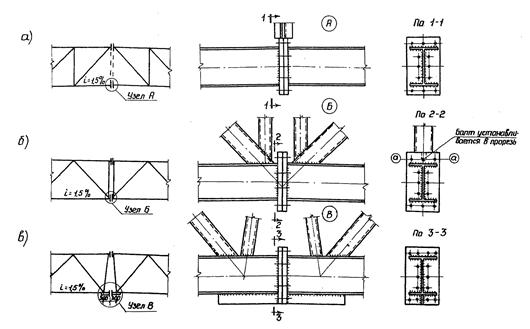 однозначной эпюре растягивающих напряжений в поясах Соединения типа А могут воспринимать местные поперечные усилия за счет трения контактирующих поверхностей и наличия "рычажного" эффекта. Сдвигающие усилия в фермах, действующие в зонах расположения монтажных стыков, должны передаваться через поверхности трения фланцевых соединений сжатых поясов.