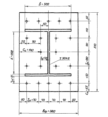 nc, nn - число болтов соответственно вдоль стенки и полки двутавра (рис. 2);