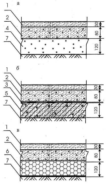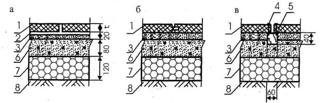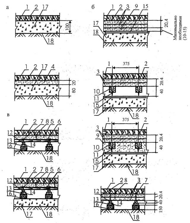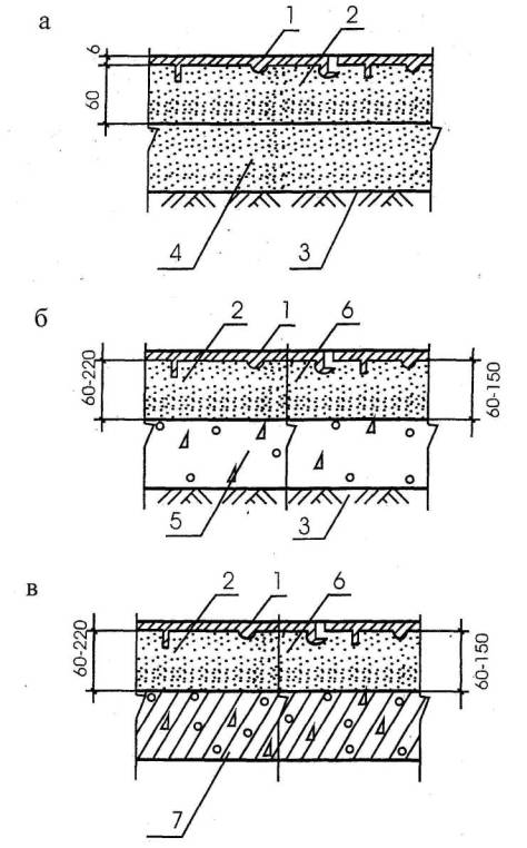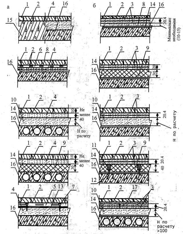 из асфальтобетона по подстилающему слою (а) и по перекрытию (б) 8.7.5 Для устройства асфальтобетонных покрытий рекомендуется применять жесткие и литые смеси (табл. 8.7.1).
