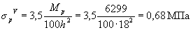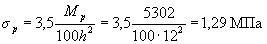 Расчётный изгибающий момент по формуле (13): MpV = M0 + ΣMi = 3261,99 + 3028,12 = 6299 Н·см/см Напряжение растяжения в плите при изгибе по формуле (7):