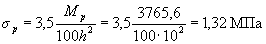 Mp = M0 + ΣMi = 4608,9 + 2347,84 = 6956, 82 Н·см/см Напряжение растяжения в плите при изгибе по формуле (7):