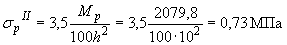 Расчётный изгибающий момент от колеса автомобиля и станка по формуле (13): MpII = M0 + ΣMi = 2908,8 - 829,0 = 2079,8 Н·см/см Напряжение растяжения в плите при изгибе по формуле (7):