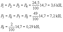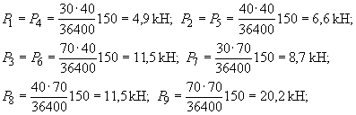 Расчёт 3 Определим напряжение растяжения в бетоне плиты при изгибе σрIII для расчётного центра O2 (рис. 1в'''). Разделим площадь следа станка на элементарные площадки согласно п. 2.18. Определим нагрузки Рi, приходящиеся на каждую элементарную площадку, по формуле (15).