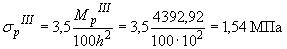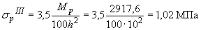 Расчётный изгибающий момент по формуле (13): MpIII = M0 + ΣMi = 2108,9 + 808,7 = 2917,6 Н·см/см Напряжение растяжения в плите при изгибе по формуле (7):