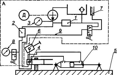 А - насосная станция; Д - гидронасос; 7.4.3 Определение максимального давления в системе гидроусилителя* * Испытание проводят, если в системе гидроусилителя имеется клапан - ограничитель давления. Изделие устанавливают на стенде,