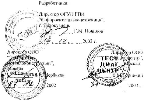 - повреждающие параметры технического состояния (ПТС). Условия дальнейшей эксплуатации - предлагаемая степень риска; - установленный срок остаточного ресурса; - предлагаемое решение по дальнейшей эксплуатации объекта; 6.3. Заключение подписывается лицами, проводившими обследование и утверждается руководителем Специализированной экспертной организации или уполномоченным на это лицом. 6.4. В приложения к отчету выносятся: необходимые чертежи здания, чертежи по результатам замеров (в случае необходимости), результаты проверочного расчета, копии сертификатов на сталь и сварочные материалы, протоколы испытаний материалов, справки о снеговых и ветровых нагрузках, копии других документов, представляющие интерес для оценки технического состояния обследуемого покрытия здания. 7. ОСОБЫЕ ПОЛОЖЕНИЯ7.1. Специализированная экспертная организация может прекратить обследование объекта на любой стадии при выявлении фактов и доказательств отсутствия остаточного ресурса объекта. 7.2. В случае получения низкого показателя гамма-процентного ресурса или прогнозирования вероятности внезапного отказа конструкции объекта рекомендуется производить их испытание. Испытания проводятся по программе, предусматривающей порядок проведения испытаний, критерии их завершения и принятия решений по результатам испытаний Программа разрабатывается Специализированной экспертной организацией и согласовывается с Заказчиком и Территориальным органом Госгортехнадзора России. 7.3. Специализированная экспертная организация не песет ответственности за разрушение конструкций ферм в период действия Технического заключения в случаях: - сейсмических и других природных воздействий на объект выше нормативных; - аварии на объекте пли смежных с ним производствах (взрыв, пожар, динамический удар и т.д.) с воздействием на объект; - игнорирование или некачественное выполнение рекомендаций Специализированной экспертной организации. 8. ПОРЯДОК ПРОДЛЕНИЯ СРОКА ЭКСПЛАТАЦИИ КОНСТРУКЦИЙ ПОКРЫТИЯ ЗДАНИЙ, ВЫПОЛНЕННЫХ ИЗ КИПЯЩИХ СТАЛЕЙ8.1. На основании выявленных повреждающих факторов, проверочных расчетов, оценок остаточного ресурса и других материалов обследования Специализированная организация предлагает Заказчику одно из решений по дальнейшей эксплуатации ферм покрытия из кипящих сталей: - продолжение эксплуатации покрытия здания при выявленных нагрузках и воздействиях; - продолжение эксплуатации с ограничением нагрузок и воздействий па покрытие здания; - усиление несущих конструкций покрытия, с последующей разработкой технической документации по реконструкции покрытия и ее выполнением; - прекращение эксплуатации. 8.2. Работы по данному этапу рекомендуется проводить в соответствии с разделами 3, 4 Стандарта СТО 22-01-02 "Руководство по эксплуатации несущих стальных конструкций покрытий зданий, выполненных из кипящих сталей", т.к. окончательное решение по продлению эксплуатации принимается Руководителем эксплуатирующей организации. Решение не должно противоречить итоговому заключению. Приложение А.ПЕРЕЧЕНЬ