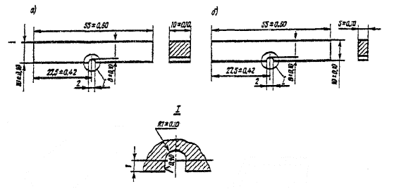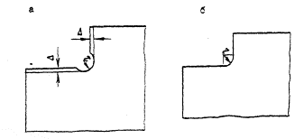 Рис. 11. Вырезы в углах деталейа - образованные сверлением и штамповкой, а также сверлением и машинной кислородной или плазменно-дуговой резкой; д = 2...4 мм; б - образованные штамповкой, а также машинной кислородной или плазменно-дуговой резкой Образование отверстий5.31. Отверстия в мостовых конструкциях с болтовыми и фрикционными соединениями образуют сверлением. Допускается расточка и термическая резка отверстий иного назначения диаметром 50 мм и более с обеспечением точности и чистоты поверхности в соответствии с табл. 3 и 5. 5.32. Детали под сверление и расточку должны устанавливаться перпендикулярно оси шпинделя. Не допускается прогиб деталей во время сверления. Сверлить отверстия следует с минимальным удалением оси шпинделя от оси колонны станка и с минимальным расстоянием от режущей части сверла до сверлильной головки. 5.33. Номинальные диаметры отверстий под высокопрочные болты фрикционных соединений и под болты нормальной точности должны быть указаны в чертежах КМ и КМД в соответствии с табл. 5, если нет особых указаний проектной организации, разработавшей чертежи КМ. 5.34. Просверленные или рассверленные отверстая должны иметь цилиндрическую форму. Шероховатость поверхности должна соответствовать 3-му классу ГОСТ 2789-73 (Rz= 40...80). Отклонения по диаметру, овальности, глубине зенкования и косине отверстий не должны превышать допусков, приведенных в табл. 5. Таблица 5. Требования к отверстиям болтовых и фракционных соединений