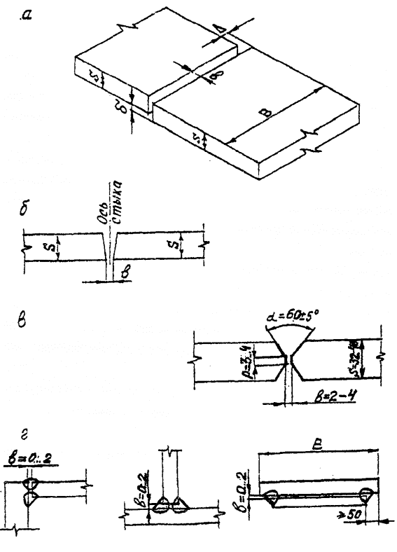 Рис. 12. Допуски при сборке соединений под сваркуа - стыковое; б - стыковое с неперпендикулярными