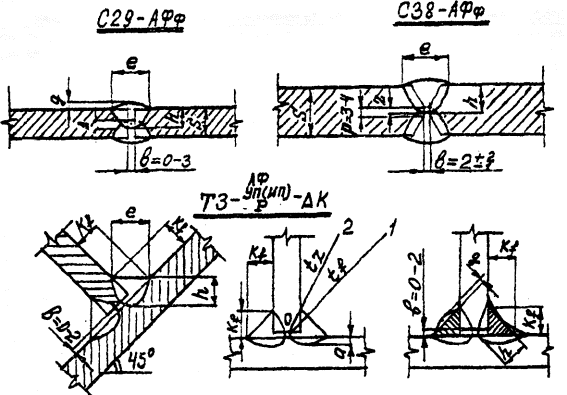 притупления, в - ширина шва, g - высота усиления, Kf - катеты угловых швов, е - зазор, Таблица 9*б. Коэффициенты расчетных сечений угловых швов bf и bz