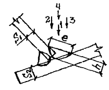 14 ±2 мм, h = 12 ±2 мм, e/h Сварку швов под тупым углом выполняют за четыре прохода, также в положения в "лодочку". Параметры шва: е =