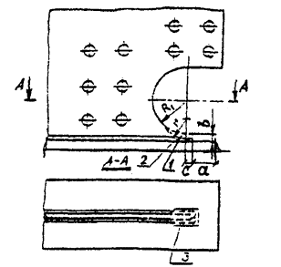 8.14. Для односторонней автоматической сварки двухслойной коррозионно-стойкой стали с МХП следует применять медную подкладку, сечение которой приведено на рис. 17. Сохранность подкладки от ожогов электрической дугой рекомендуется обеспечивать обмоткой ее двумя слоями стеклоткани, смазкой специальным составом (ТФС) или подсыпкой измельченного флюса слоем толщиной 1 мм. Длину звеньев подкладки принимают 600-800 мм со стыковкой их встык с зазором 1-2 мм (см, рис. 17). Медная подкладка толщиной не менее 18 мм должна быть уложена в стальную обойму и плотно поджата к стыкуемым элементам посредством винтовых или пневматических прижимов или скоб с клиньями. Ширину канавки принимают 24 мм. При сварке стыка должны быть созданы условия свободной поперечной усадки шва, Допускаются два способа односторонней сварки (см. табл. 18): а) раздельная, при которой за первый проход сваривается основной слой стали 09Г2С, а за второй - плакирующий слой 12Х18Н10Т; б) однопроходная на всю толщину свариваемого металла.