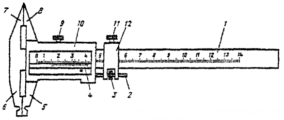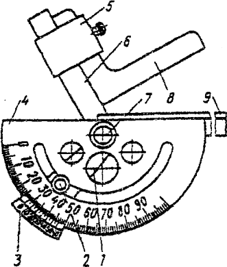 Рис. 9. Схема устройства для контроля температуры нагрева1 - горелка; 2 - притертый медный "пятачок"; 3 - стальная пластина; 4 - прибор, регистрирующий температуру; 5 - прижим; 6 - термопара, заключенная в трубку с двумя отверстиями 5.8. Данные по расходу материалов и эффективной мощности пламени горелки приведены в приложении Б. В этом же приложении есть таблица цветов каления и побежалости при нагреве и охлаждении стали. 5.9. Весь предназначенный для изготовления мостовых конструкций металлопрокат должен быть перед запуском в производство очищен от прокатной окалины и ржавчины на поточных линиях очистки и консервации. Разрешается производить очистку металла переносными дробеструйными или пескоструйными установками и ручным механизированным инструментом (иглофрезами, шарошками и т.п.). Степень очистки металлопроката - 2 по ГОСТ 9.402-80. 5.10. Очистку стального проката на поточных линиях выполняют колотой дробью, закаленной с низкотемпературным отпуском, марки ДСК ГОСТ 1964-81* размером 0,6-0,9 мм для углеродистых и 0,8-1,2 мм для низколегированных сталей. Допускается применение литой дроби марки ДСЛ по тому же стандарту и тех же размеров, что и колотой. Жировые загрязнения и консервационные смазки, имеющиеся на прокате, должны быть удалены растворителями или моющими средствами до дробеметной очисткой. Ориентировочные режимы очистки проката на поточных линиях приведены в приложении В. Разметка, резка, штамповка стали5.11. Для разметки деталей используют рулетки 1 - 2-го классов точности по ГОСТ 7502-89, линейки измерительные металлические со штриховыми шкалами длиной 300, 500, 1000 мм ГОСТ 427-75, штангенциркули ГОСТ 186-80, штангенрейсмасы ГОСТ 164-80, угольники поверочные ГОСТ 3749-77, угломеры с нониусом ГОСТ 5378-86 (Приложение М). Контроль измерительного инструмента в соответствии с требованиями соответствующих стандартов должен производиться заводской лабораторией или отделом технического контроля. При разметке и контроле деталей длиной более 10 м рулетками РЗ-20, РЗ-30 и РЗ-50 следует пользоваться одной и той же рулеткой, прошедшей лабораторный контроль. 5.12. Предельные отклонения при разметке не должны превышать величин, приведенных в табл. 1. Таблица 1. Точность разметки деталей