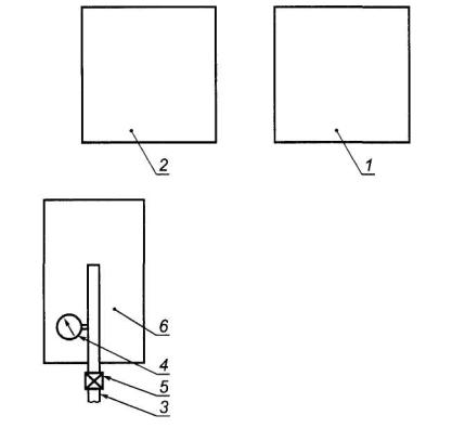 - устройство для обдува сжатым воздухом, состоящее из баллона или трубопровода, манометра по 5.4, редуктора или другого приспособления, регулирующего подачу воздуха, и сопла диаметром 8 мм и длиной 5 мм. Расстояние от сопла до обдуваемой поверхности должно быть 100 мм;