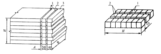 этом толщина отпада должна быть не менее Заготовки (рисунок 4) распиливают на образцы в виде прямоугольной призмы сечением (50×50)±0,5 мм и высотой h, равной высоте сечения изделия или конструкции. Противоположные плоскости образцов должны быть параллельны между собой, а клеевые прослойки - перпендикулярны к плоскости пропила. При большой высоте сечения изделия или конструкции заготовка для образцов может быть разделена на 2 - 3 части.