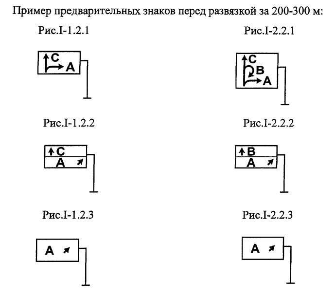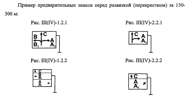 предварительных знаков перед развязкой (перекрестком) за 150-300 м