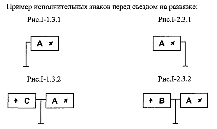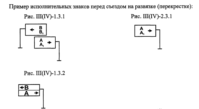 исполнительных знаков перед съездом на развязке (перекрестке)