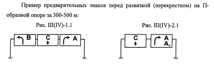 предварительных знаков перед развязкой на П-образной опоре за 300-500 м