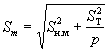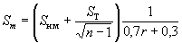 где SТ.н.м - среднее квадратическое отклонение построенной градуировочной зависимости для неразрушающего метода; SТ.м.о.с - среднее квадратическое отклонение градуировочной зависимости метода отрыва со скалыванием, принимаемое 0,04 от средней прочности бетона участков, использованных при построении градуировочной зависимости, при анкерном устройстве с глубиной заделки 48 мм; 0,05 от средней прочности бетона - с глубиной заделки 35 мм и 0,06 средней прочности - с глубиной заделки 30 мм. 9.11.13 В тех случаях, когда в качестве единицы прочности бетона может быть принята осредненная прочность в конструкции (например, колонне) или зоне конструкции, среднее квадратическое отклонение прочности бетона Sm определяют по формуле