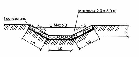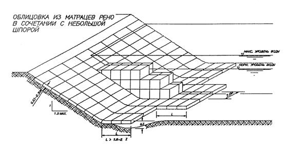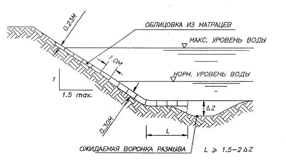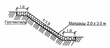 не менее - Уклон естественных склонов и заложение откосов искусственных насыпей, защищаемых матрасно-тюфячными габионами, определяется проектом в зависимости от устойчивости и прочности грунта основания, но не круче 1:1,5. 5.3.9. В сооружениях