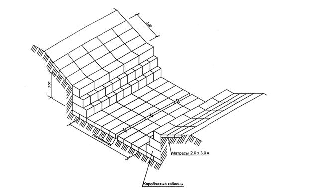 габионы на крутых откосах закрепляют к основанию анкерами из арматуры, длиной