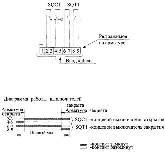 Рис. 1. Электрическая схема соединения концевых выключателей арматуры с ручным управлением