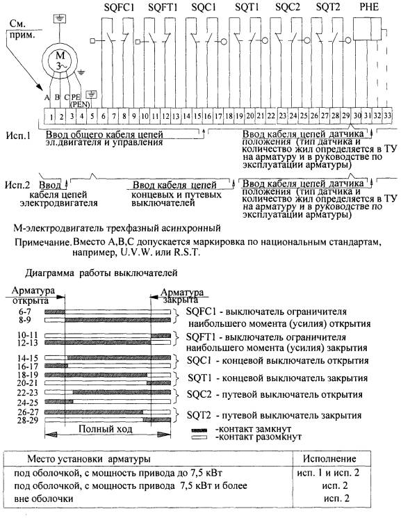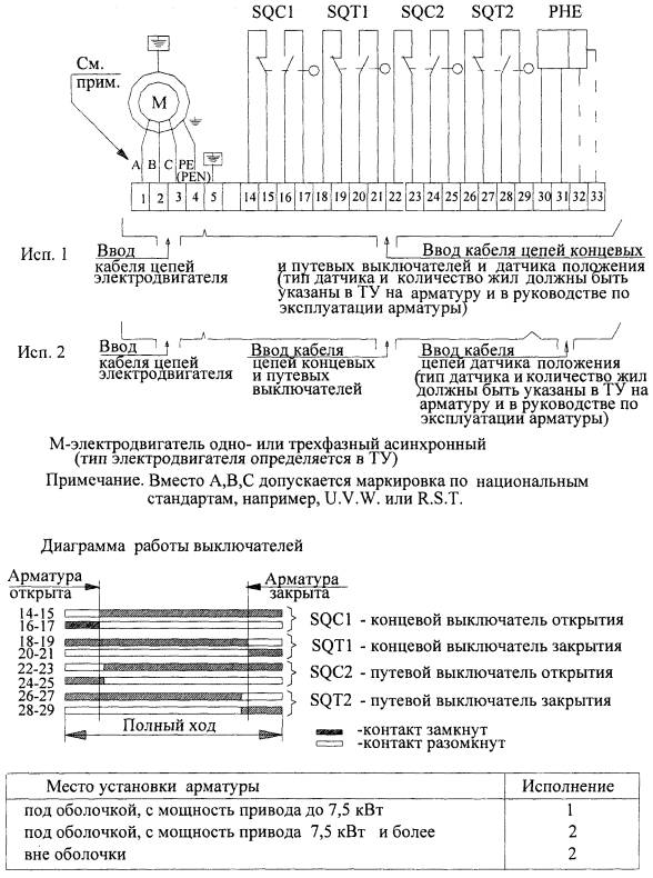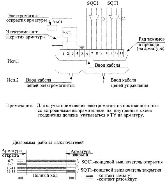 Рис. 2. Электрическая схема соединения электропривода запорной арматуры