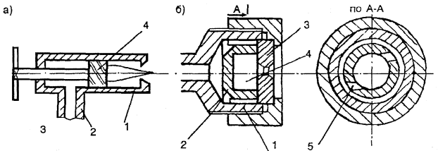 форсунок механического распиливания: Установка на форсунки механического распиливания топлива наружных воздушных каналов подвода воздуха от вентиляторов не дает улучшения качества распиливания топлива. Разделение воздуха на первичный и вторичный, но подаваемого от одного вентилятора, обеспечивает только закручивание топливного факела, чем улучшается процесс смесеобразования, но усложняется процесс регулирования. Именно так работают форсунки асфальтобетонных установок ДС-158 и ДС-1858 (рис. 3.5).
