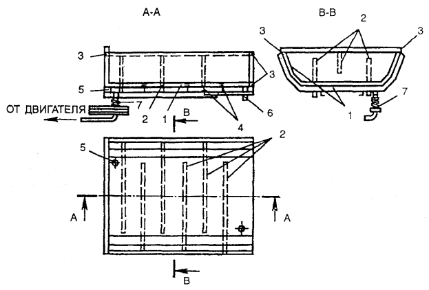 схема машины «Шаттл-Багги»: Автосамосвал выгружает смесь в приемный ковш 1, в котором установлены два шнека для ее повторного перемешивания. Оригинальность шнека состоит в трижды увеличивающемся к оси ковша шага его лопастей, что позволяет единовременно захватывать и перемешивать смесь с различной температурой и зерновым составом из шести точек. Из накопительного бункера 3 смесь без контакта с асфальтоукладчиком равномерно перегружается в его бункер. Бесконтактная и равномерная загрузка асфальтоукладчика позволяет ему двигаться без остановок и с большой скоростью, т.к. у него отпадает необходимость останавливаться или толкать груженые автосамосвалы. Применение перегрузчика Шаттл-Багги в составе отряда по строительству асфальтобетонных покрытий позволяет: • укладывать однородную по температуре и зерновому составу смесь, что способствует обеспечению высокой ровности и долговечности покрытия с сокращением эксплуатационных расходов на него; • увеличить производительность укладки смеси и сократить количество автосамосвалов для ее доставки. Ориентировочно стоимость машины типа SB 2500 (400 тыс. $ США) окупается за 4…5 лет. 4.2. МЕРОПРИЯТИЯ, СВЯЗАННЫЕ С ОБЕСПЕЧЕНИЕМ КАЧЕСТВА ТРАНСПОРТИРОВАНИЯ СМЕСЕЙОчистка и обработка кузова самосвалаПоверхность кузова не должна иметь углублений, в которых могут скапливаться вещества, применяемые для обработки внутренней поверхности кузова, или асфальтобетонная смесь. Перед загрузкой смеси в кузове автосамосвала не должно быть никаких материалов; мусор и остатки смеси необходимо удалить. После очистки кузова его необходимо обработать специальным раствором, предотвращающим прилипание смеси к его внутренней поверхности. В качестве таких веществ не следует применять нефтесодержащие материалы, т.к. они отрицательным образом изменяют свойства смеси, оказывают неблагоприятное воздействие на окружающую среду (вследствие испарения, просачивания в грунт и асфальтобетонные покрытия). Раствор (мыльный, водно-известковый) наносится разбрызгиванием на стенки и дно кузова. Поверхность следует покрывать минимальным количеством раствора, чтобы его избыток не накапливался на дне кузова. Излишки раствора удаляются до подачи самосвала для загрузки. Загрузка смесиЦелью этой операции является заполнение кузова самосвала смесью с минимальными сегрегацией, временем и теплопотерями. Правильное выполнение этой операции предусматривает заполнение кузова несколькими порциями смеси вместо непрерывной полной загрузки. Порционная загрузка сокращает расстояние, на которое могут скатываться крупные зерна смеси, и таким образом сохраняет однородность смеси по зерновому составу (уменьшает сегрегацию смеси). Самосвал, независимо от его марки и длины кузова, должен загружаться несколькими замесами, которые располагают на разных участках кузова. Если самосвал загружается непосредственно из АС установки периодического действия, то требование загрузки несколькими замесами должно выполняться в обязательном порядке. Для этого при загрузке самосвал должен смещаться после загрузки каждой из трех порций смеси. Первую порцию загружают в переднюю часть кузова. После этого самосвал подают вперед и загружают вторую порцию смеси к заднему борту. Третью порцию загружают в середину кузова между двумя пре