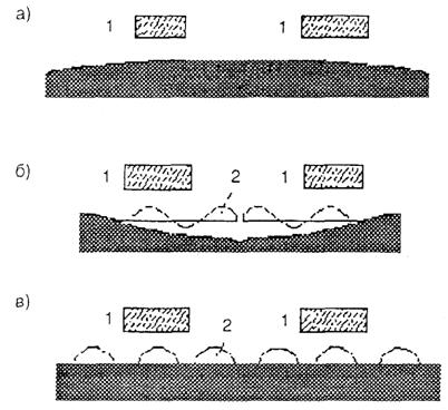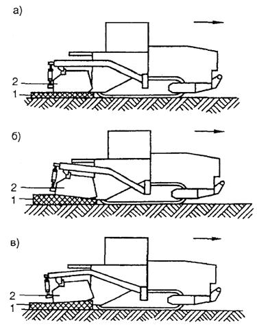 поперечного профиля покрытия: Выглаживающая плита оснащается нагревателями, которые предназначены для ее обогрева в начале работы асфальтоукладчика. Очень важно, чтобы основание плиты имело такую же температуру, как и асфальтобетонная смесь, находящаяся под ней, В противном случае слой смеси будет прилипать к основанию плиты и «разрываться». Продолжительность нагрева плиты зависит от температуры воздуха. Необходимо следить за тем, чтобы не произошло перегрева плиты, так как это приведет к необратимому ее деформированию. После прогрева плиты в процессе укладки смеси нагреватели отключаются. Рис. 5.6. Варианты