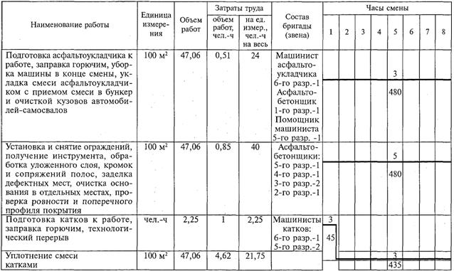 уплотнения асфальтобетонной смеси катками (размеры в см): При укладке полосы из смеси типов А и Б первые проходы катка необходимо производить сразу же за асфальтоукладчиком. Смеси типов В, Г и Д следует уплотнять с некоторым перерывом. Продолжительность перерыва определяется способностью слоя смеси выдерживать уплотняющую нагрузку не сдвигаясь. Чтобы достичь однородной плотности смеси по всей ширине асфальтобетонной полосы, следует применять такую схему укатки, которая обеспечивает равномерное распределение уплотняющих воздействий по ее ширине (рис. 5.12). При этом необходимо соблюдать равную величину перекрытия проходов катка. Общие рекомендацииУплотнение является одной из основных технологических операций, которая определяет качество покрытия. Операцию уплотнения необходимо производить в период времени, когда асфальтобетонная смесь не остыла ниже критической температуры (табл. 5.5). Продолжительность этого периода зависит от начальной температуры и толщины уплотняемого слоя, погодных условий, состояния основания и определяется расчетом (прил. 24). Рациональная скорость укатки зависит от типа применяемых уплотняющих средств (катки с жесткими металлическими вальцами, катки на пневмошинах, виброкатки) и типа уплотняемой смеси. Снижение скорости укатки увеличивает эффект уплотнения. Если смесь не выдерживает уплотняющих воздействий (каток «тонет»), то необходимо откорректировать состав смеси или снизить контактное давление на нее катка (заменить каток, снизить давление воздуха в шине), увеличить скорость укатки. Рациональная скорость катка зависит от типа применяемых средств (катки с гладкими металлическими вальцами, катки на пневмошинах, виброкатки) и типа уплотняемой смеси. Если смесь не выдерживает уплотняющих воздействий (каток «тонет»), то необходимо снизить контактное давление на нее катка (замедлить каток, снизить давление воздуха в шине), увеличить скорость укладки. Рациональная скорость катка зависит от типа применяемых средств (катки с гладкими металлическими вальцами, катки на пневмошинах, виброкатки) и типа уплотняемой смеси. Следует применять такую схему укатки, при которой обеспечивается равномерное распределение уплотняющих воздействий по всей ширине полосы укладки. Рекомендуется виброуплотнение смеси катками производить при 25…35 вибровоздействиях (виброударах) на 1 п. м уплотняемой полосы. Амплитуда колебания вибровальца уточняется в соответствии с толщиной уплотняемого слоя. При работе катка необходимо вибровалец направлять в сторону асфальтоукладчика. 5.6. ОПЕРАЦИОННЫЙ КОНТРОЛЬ КАЧЕСТВАКонтроль ровности поверхности основания, подготовленного под укладку и уплотнение асфальтобетонного слоя, осуществляется ежесменно путем измерения просветов под трехметровой рейкой с помощью клина. Измерение следует производить в пяти контрольных точках, расположенных на расстоянии 0,5 м от концов рейки и друг от друга. На каждой сменной захватке приложения рейки с уровнем для измерений просветов и поперечных уклонов следует произвести с шагом 10 м; определение вертикальных отметок путем нивелирования - с шагом 5 м (прил. 2 СНиП 3.06.03-85). Контроль расхода органического вяжущего при подгрунтовке поверхности основания производится следующим образом: на основание укладывается лист бумаги (площадью не м