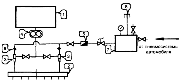 автосамосвала, оборудованного обогревом выхлопными газами: Транспортные операции смеси в дождливую погодуНачинать производство работ в дождливую погоду запрещено. Если прогноз погоды метеослужбы не оправдался и в процессе работы имеют место дождевые осадки, то возможны различные варианты производства работ. При устройстве верхних слоев АБ покрытий работы следует приостановить, возвратить смесь на завод для ее регенерации и последующего использования в менее ответственных слоях. При устройстве нижних слоев покрытий и оснований, если дождь моросящий, поверхность нижележащих слоев обработана вяжущим материалом и не имеет «водяных блюдец», то строительство можно продолжить. При этом следует организовать быструю разгрузку самосвалов и сразу же после укладки производить уплотнение слоя. При кратковременном дожде смесь следует оставить в самосвале под пологом и производить ее укладку после того, как поверхность основания просохнет естественным образом или будет просушена специальным оборудованием. В теплую погоду смесь практически не снижает удобоукладываемости и уплотняемости при выдерживании в самосвалах в течение 2…3 часов. Следует иметь в виду, что в это время происходит старение смеси. Взаимодействие автосамосвалов с асфальтоукладчикомКогда смесь выгружается в приемный бункер асфальтоукладчика, водитель самосвала должен подавать машину назад к асфальтоукладчику и останавливать ее вблизи от его упорных роликов. Как только самосвал остановится, водитель нажимает на тормоз, а машинист асфальтоукладчика направляет укладчик вперед и стыкуется с самосвалом. Основное правило взаимодействия самосвалов с асфальтоукладчиком: асфальтоукладчик должен стыковаться с самосвалом, но самосвал не должен сталкивать асфальтоукладчик назад с его оси движения. Выгрузка смесиКогда смесь имеет тенденцию к сегрегации, необходимо слегка приподнять кузов автосамосвала, чтобы смесь сползла к заднему откидному борту до того, как он будет открыт. Такой прием позволяет выгрузить смесь из самосвала в виде единой массы в приемный бункер укладчика, что снижает вероятность сегрегации смеси в устраиваемом покрытии. Для обеспечения выгрузки смеси из автосамосвала к раме приемного бункера асфальтоукладчика приваривается стойка с короткой цепью. Перед выгрузкой смеси рабочий надевает звено цепи на нижний крючок заднего борта автосамосвала. При опускании задней части кузова цепь открывает задний борт без помощи рабочего. После выгрузки смеси в бункер и очистки кузова от остатков смеси рабочий снимает цепь с борта и подает сигнал для отъезда автосамосвала. 4.3. ОПЕРАЦИОННЫЙ КОНТРОЛЬ КАЧЕСТВАОриентировочные интервалы изменения температуры асфальтобетонной смеси перед ее выгрузкой в приемный бункер асфальтоукладчика приведены в табл. 4. Таблица 4