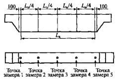 Отклонение от плоскостности (вогнутость или выпуклость листа балки) f. Измеряется на участке между главными (большими) диафрагмами |