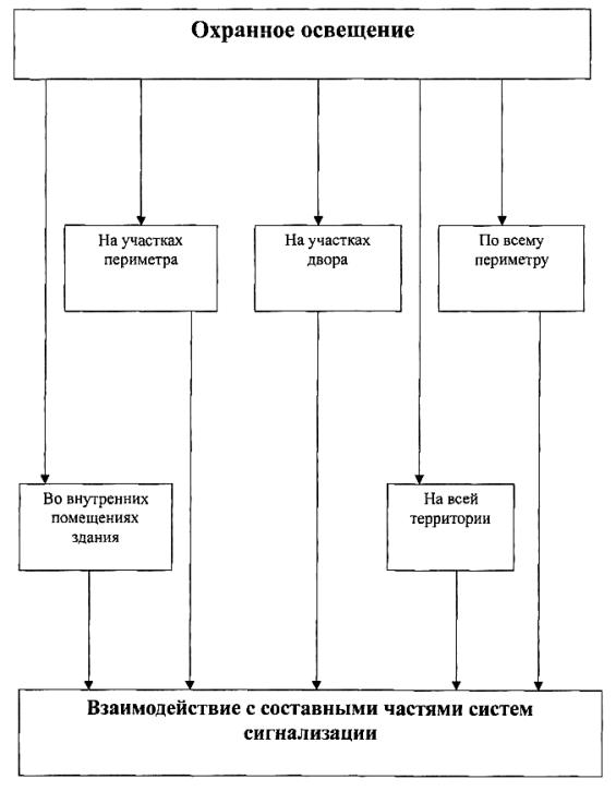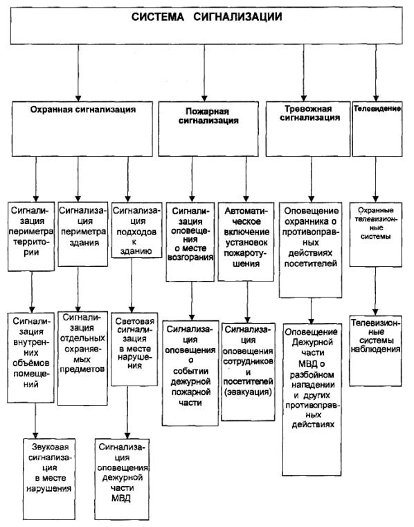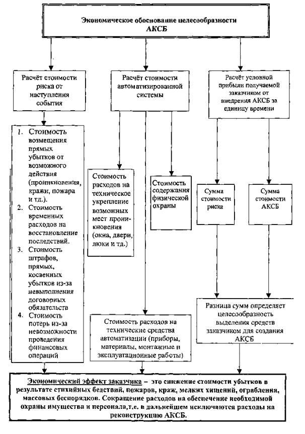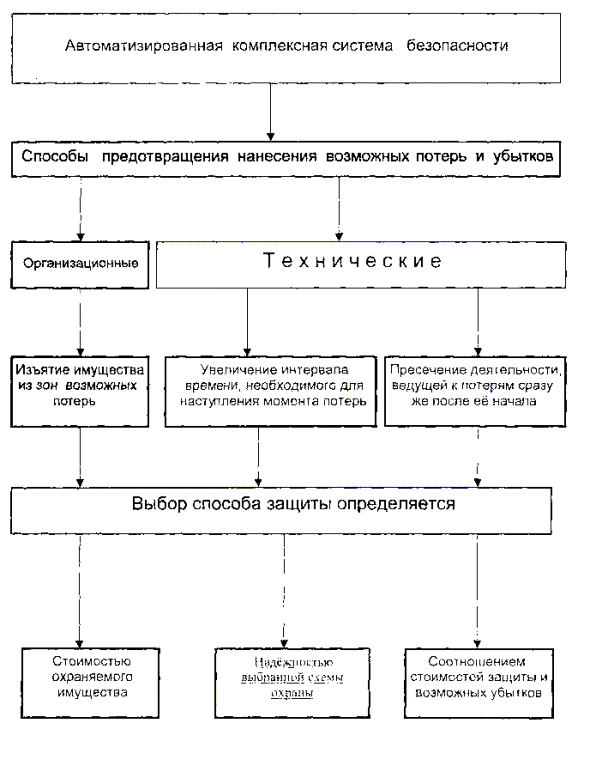 Рис. 17 5.4.1. Общие требования к техническому заданию на проектирование автоматизированной комплексной системы безопасности.Общие сведения I Стадия проектирования - технический проект, - проект системы, - рабочий проект системы, ш рабочая документация. Требования по вариантной разработке 1. Количество вариантов. 2. Требования к каждому варианту по: - архитектуре и возможностям системы, - по применяемому оборудованию, - по стоимости, - по др. критериям. 3. Уровень разработки каждого варианта: - проект, - рабочий проект, - рабочая документация (любая часть рабочего проекта), - технический проект (и т.д.). 4. Основные требования к инженерно-техническому оборудованию. - Тип, марка, - Резервное питание, - Работа в аварийных ситуациях и т.д. 5. Требования о необходимости выполнения научно-исследовательских и опытно-конструкторских работ в процессе разработки. - Разработка программного обеспечения. - Разработка специальных устройств и конструкций. 6. Требования о необходимости выполнения экологических и санитарно-гигиенических условий к объекту. 7. Технические условия от заинтересованных ведомств и служб. II Технические требования к проектируемой автоматизированной комплексной системе безопасности 1. Место расположения аппаратуры управления системой. - Состав аппаратуры управления 2. Условия выдачи тревожной информации системой. Пожарной сигнализации - При появлении дыма в помещении концентрацией более 5%. - При повышении температуры в помещении до +80 гр. С. - При очаге открытого пламени площадью 1-2 кв. м. - При появлении открытого пламени. - Для включения оповещения (звукового, светового и голосового). - Для включения системы дымоудаления. - Для включения системы пожаротушения (газового, аэрозольного, водяного). - Для закрытия пожарных дверей и перегородок. Охранной сигнализации - По периметру территории. - По участкам периметра территории. - При разбитии оконных стекол. - При открытии дверей помещений. - При нарушении объёмов помещений. - При вскрытии приборов охранной сигнализации. - При перерезании шлейфов и соединительных линий системы безопасности. Теленаблюдение - По периметру территории. - По участкам периметра территории. - По коридорам. - По помещениям. - Запись видеосигнала. - Цифровая автоматическая видеозапись всех входящих и выходящих клиентов. - Просмотр видеоизображения. Охранного освещения - По периметру территории. - По участкам периметра территории. - По коридорам - По помещениям III Виды сигналов, выдаваемых аппаратурой составных частей АКСБ: - оператору, - охраннику, - сотрудникам и посетителям, - руководителю, - начальнику СБ., - в дежурную часть пожарной охраны, - на пункт централизованной охраны. IV Виды информации, выдаваемой аппаратурой составных частей АКСБ: - оператору, - охраннику, - сотрудникам и посетителям, - руководителю, - начальнику СБ., - в дежурную часть пожарной охраны, - на пункт централизованной охраны. V Периодичность передачи информации: - оператору, - охраннику, - сотрудникам и посетителям, - руководителю, - начальнику СБ., - в дежурную часть пожарной охраны, на централизованный пункт. VI Способы отображения поступающей информации от составных частей аппаратуры АКСБ - Виды форматов. - Принтер и т.д. VII Способы приёма и сдачи помещений под охрану - Автоматический по каждому помещению. - Автоматический по группе помещений. VIII Способы уч