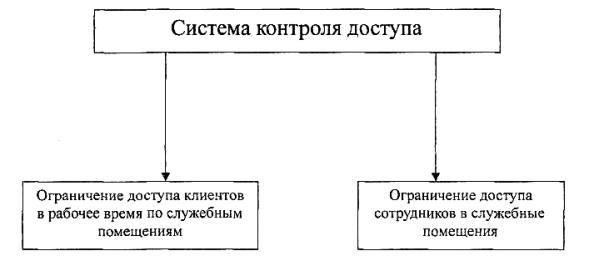 Рис. 9 4.4. Система контроля и разграничения доступа (см. рис. 10).В систему контроля и разграничения доступа входят подсистемы: - Ограничение доступа клиентов в рабочее время по служебным помещениям, - Ограничение доступа сотрудников в служебные помещения.