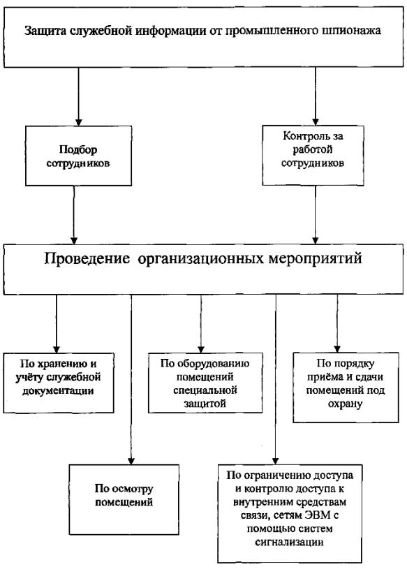 Рис. 10 4.5. Система зашиты информации от промышленного шпионажа (см. рис. 11)В систему защиты служебной информации от промышленного шпионажа входят подсистемы: - Комплекс мероприятий по подбору сотрудников, - Комплекс мероприятий по контролю за работой сотрудников.