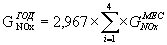 где τ - число дней в месяце. Годовой валовой выброс загрязняющего вещества для цеха (КС) вычисляется усреднением выбросов расчетных месяцев по следующей формуле (т/год):