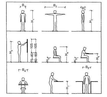 3.11 Необходимость мероприятий по решению учреждений гражданской обороны определяется в каждом конкретном случае заданием на проектирование. Требования к интерьеру и размерам внутреннего пространства 3.12 Организация внутреннего и внешнего пространства, учитывающая особенности детей-инвалидов, проектируется исходя из обязательных минимально допустимых параметров комфортного проживания в соответствии с таблицами Б.1 - Б.2; В.1 - В.2; Г.1 - Г.8 приложений Б - Г, рисунком 2. 3.13 Оборудование помещений для детей- инвалидов следует принимать в соответствии с антропологическими и эргонометрическими данными детей, имеющих различные нарушения физического и умственного развития, в соответствии с рисунком 2. Параметры помещений для детей с физическими недостатками (нарушением зрения, слуха, речи) принимаются такими же, как и для помещений, рассчитанных на здоровых детей, в этом случае площадь тела в плане равна 0,1 м2 (в летней одежде). Для слепых детей (с остротой зрения 0 - 0,05), которые используют ориентировочную трость для передвижения в окружающем пространстве, среднюю площадь тела в плане следует принимать 0,4 м2. Для детей с последствиями полиомиелита и церебральных параличей, аномальных детей площадь тела ребенка, занимаемая в плане, составляет: - без использования дополнительных опор - 0,25 м2; - с одной дополнительной опорой - 0,2 м2; - с двумя дополнительными опорами - 0,3 м2 (по данным д-ра архит., проф. В.К. Степанова). На основе антропологических и эргонометрических данных детей-инвалидов жилые помещения следует принимать не менее, м2: - спальные комнаты для детей-инвалидов с физическими недостатками - 4,0; для слепых (с остротой зрения 0 - 0,05) - 4,5; - спальные комнаты для детей-инвалидов лежачих - 6,0; - комнаты дневного пребывания - 3; - классные комнаты в жилых ячейках - 2,5. 3.14 В составе жилой ячейки для детей с физическими недостатками, для старшеклассников следует предусматривать дополнительно комнаты для индивидуальных занятий площадью на 1 воспитанника не менее 1,5 м2/место, а для детей-инвалидов с последствиями полиомиелита и церебральных параличей - не менее 1,8 м2/ место. 3.15 При проектировании помещений рекомендуется пользоваться габаритными схемами, приведенными на рисунках 3 - 11. 4 Планировка участка4.1 Дома-интернаты для детей-инвалидов следует размещать на обособленных участках в озелененных районах селитебной территории, вблизи подъездных дорог, действующих инженерных коммуникаций в пределах радиуса обслуживания пожарного депо, на расстоянии не менее 3000 м от промышленных предприятий, улиц и дорог с интенсивным движением транспорта и железнодорожных путей, а также других источников повышенного шума, загрязнения воздуха и почвы. 4.2 Площадь земельного участка учреждений для детей-инвалидов следует принимать в соответствии с таблицами В.1 - В.2 приложения В. При строительстве нового здания дома-интерната для детей-инвалидов в районах с затесненной застройкой площадь земельного участка может быть уменьшена, но не более чем на 20 %. 4.3 На участке следует разграничивать его территорию для площадок групп детей с сохранным интеллектом и детей умственно отсталых с учетом использования различными группами соответствующих функциональных зон организованных площадок на одну группу или общую на 2-3 группы: - учебно-производственной зоны (садово-ягодные уча