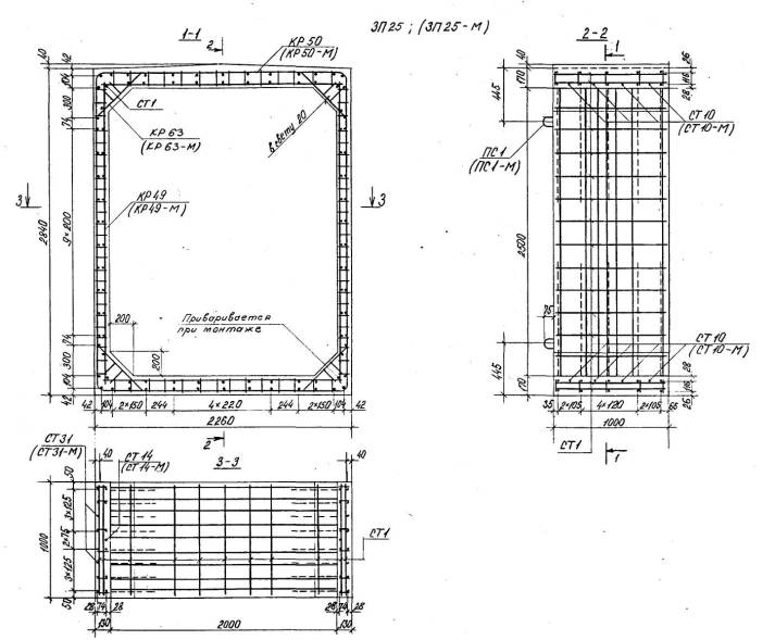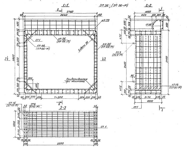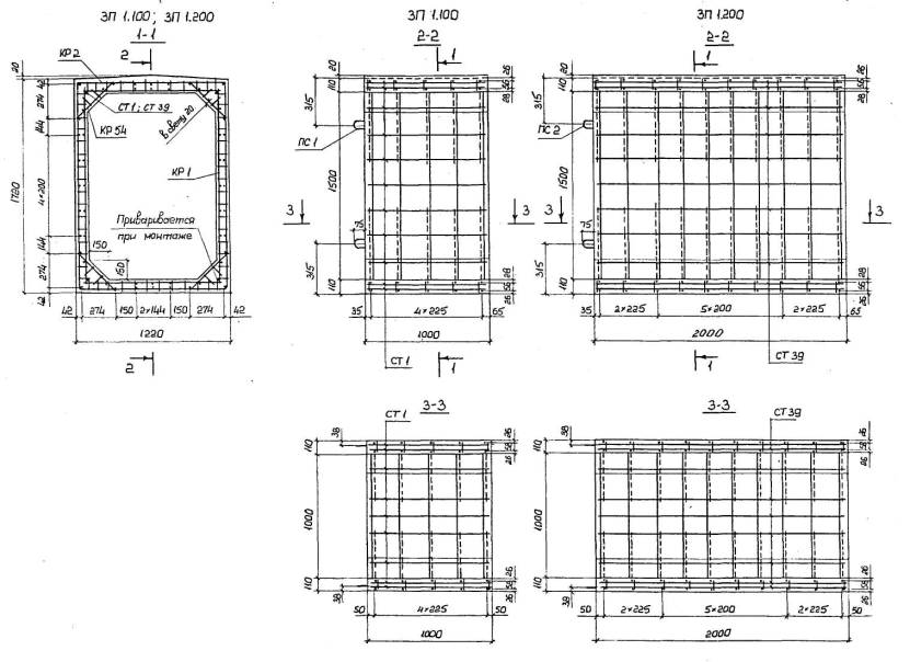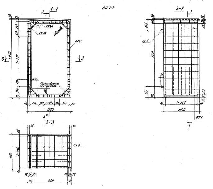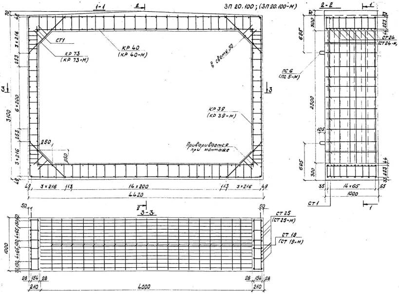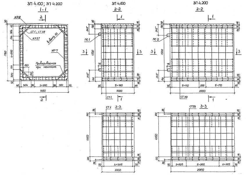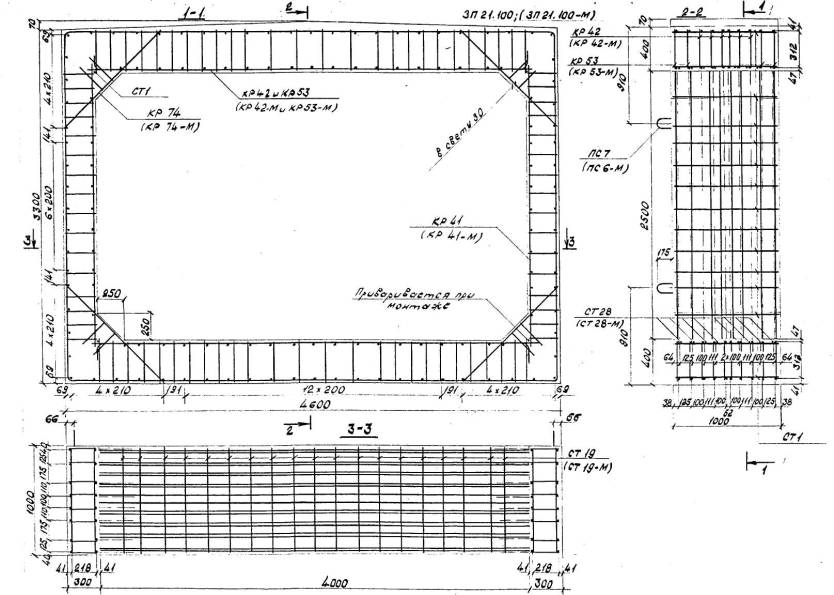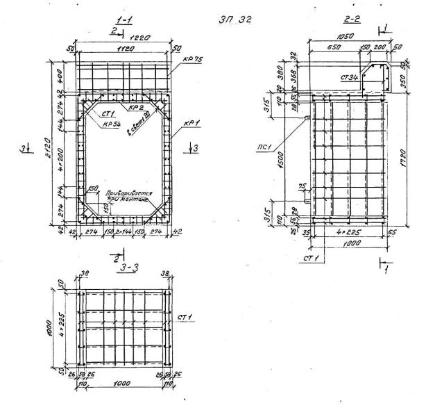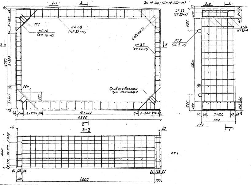 Расположение арматуры в звеньях отверстиями 1,00-4,00 м должно соответствовать