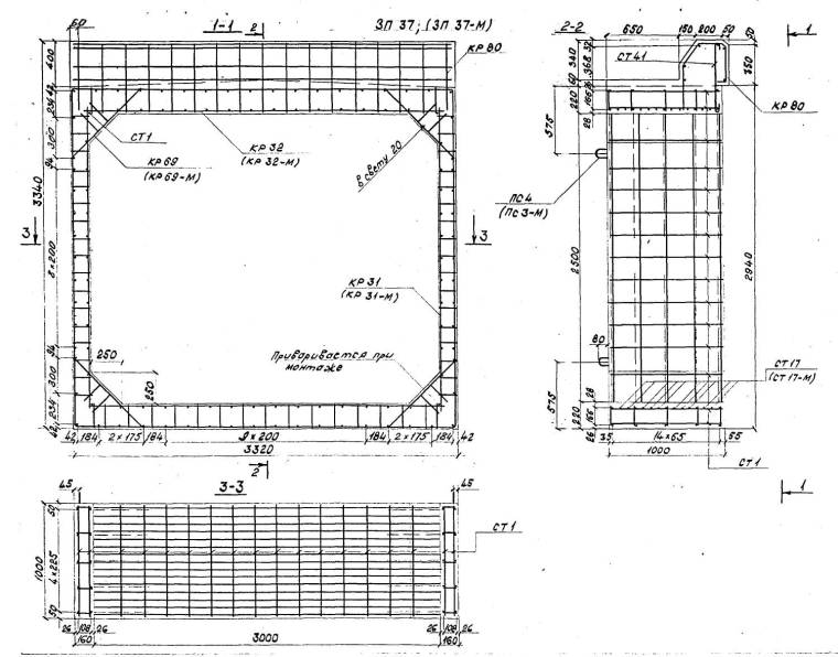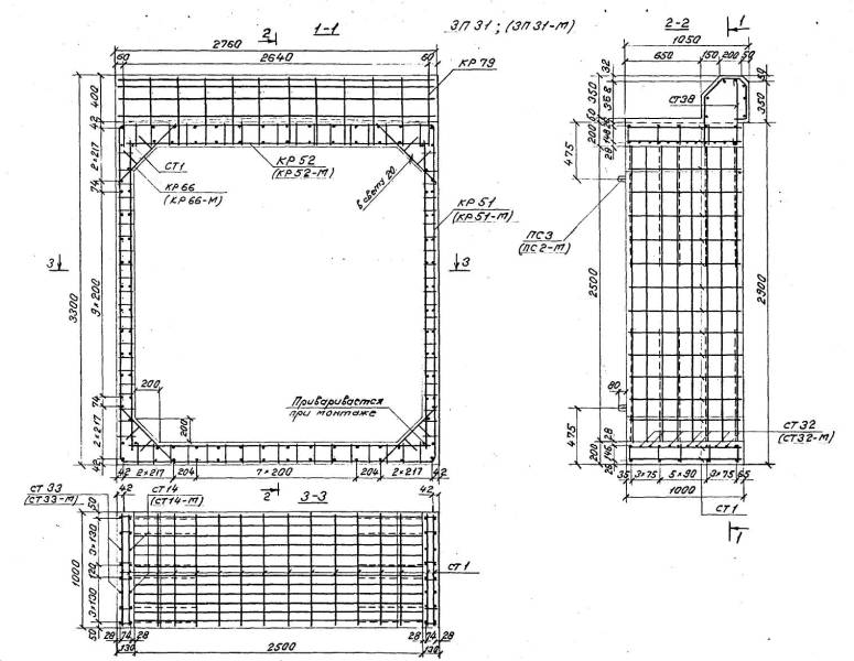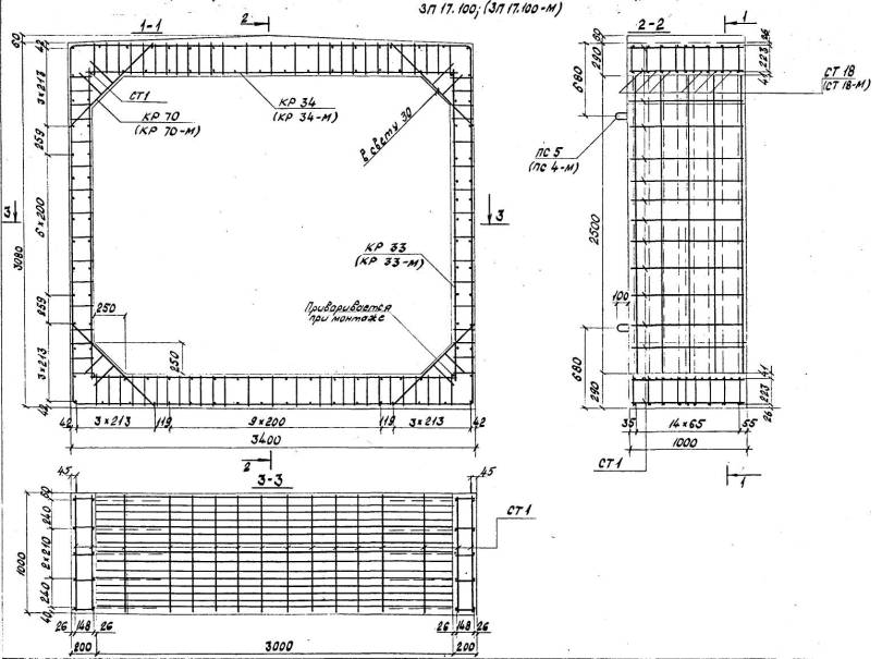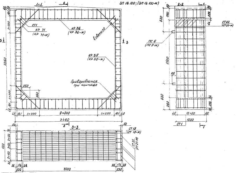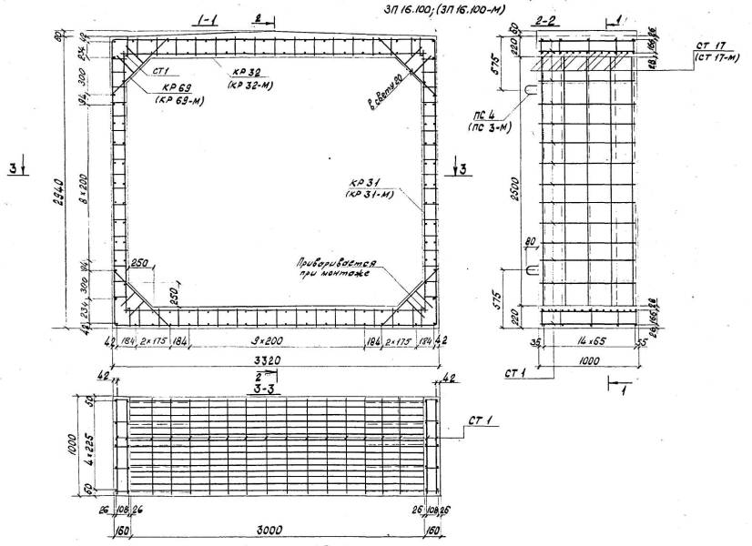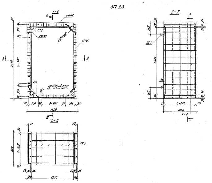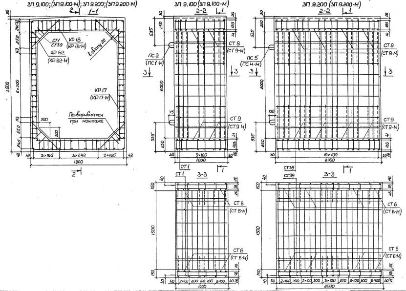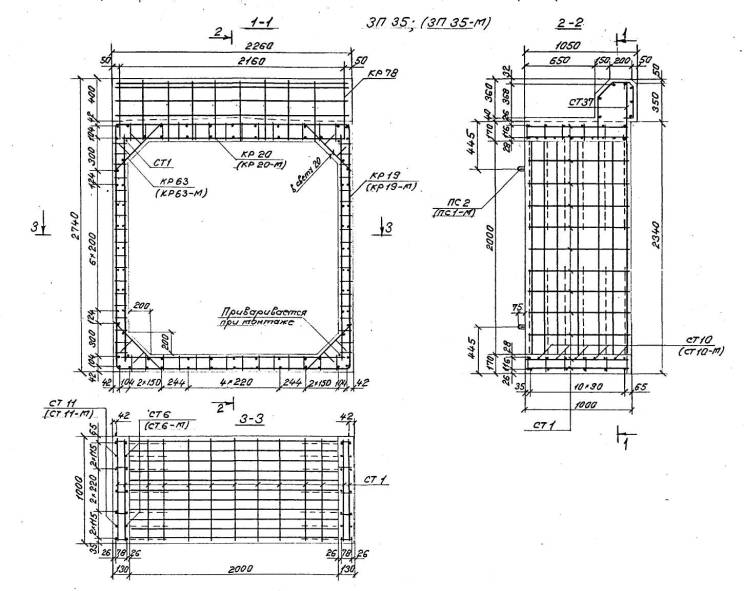 Расположение арматуры в звеньях отверстиями 1,00-4,00 м должно соответствовать