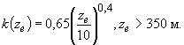 Значения коэффициента kg(ze) для местности типа В (п.6.5 СНиП [1]) приведены в табл. 4.2. При его определении учтено изменение средней и пульсационной составляющих давления ветра по высоте и принято, что конструктивные элементы ограждения и узлы их крепления к зданию являются достаточно жесткими и в них не возникает заметных динамических усилий и перемещений. В противном случае значение этого коэффициента необходимо уточнить на основе результатов динамического расчета системы «элементы ограждения - их несущие конструкции - элементы их крепления». Таблица 4.2 Значения коэффициента kg(ze) для местностей типа В