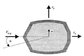 где α, рад - угол натекания потока ветра (рис. 4.5); сх и сy - соответственно аэродинамические коэффициенты лобового сопротивления и боковой силы, определяемые, как правило, на основе результатов модельных аэродинамических испытаний (см. п. 4.8);