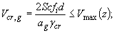 где Sc - число Скратона; fi, Гц - частота колебаний по i-й изгибной собственной форме; d, м - поперечный размер здания; т, кг/м - эквивалентная погонная масса; ρа = 1,25, кг/м3 - плотность воздуха; γсr = 1,2 - коэффициент надежности; δ - логарифмический декремент при поперечных колебаниях здания; Vmax(z) - максимальная скорость ветра на высоте z (см. п. 4.4.3); аg - коэффициент, зависит от формы поперечного сечения сооружения, его аэродинамических свойств и определяется по формуле
