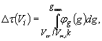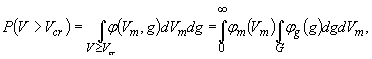 где φ(Vm,g) - совместная плотность вероятности параметров Vm и g; φm(Vm) и φg(g) - плотности вероятности случайной величины Vm и случайной функции g(t), которые считаются статистически независимыми. Область интегрирования G для внутреннего интеграла в (4.25) удовлетворяет условию Плотность φm(Vm) распределения вероятности средней скорости Vm может быть определена на основе многолетних данных метеонаблюдений за распределением скоростей ветра. Обычно метеорологическая информация представляется в виде числа регистрации скоростей ветра Vi, попадающих в некоторые фиксированные интервалы ΔVi (i = 1,2...). Из соотношений (4.22), (4.25) и (4.26) следует, что в этом случае