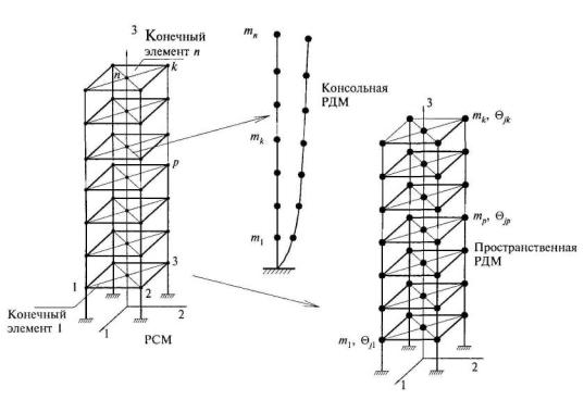 расчетная динамическая модель сооружения при интегральной модели сейсмического