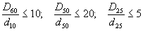 где Dn (D60, D50 и т.д.) - диаметр частиц филътрующей обсыпки, мельче которого в обсыпке находится по весу n процентов ее состава; dn (d25, d50) - то же дренирующего грунта;