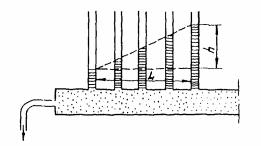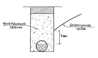 Высота высачивания hmax, т.е. разрыв между уровнем воды в дрене и на контакте дренажной обсыпки с грунтом (рис. 20), определяется по формуле