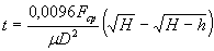 где Fcp - средняя площадь бассейна, принимаемая равной h - максимальная глубина бассейна (глубина воды над водоприемным колодцем); D - диаметр труб, обеспечивающий опорожнение бассейна; H - высота уровня воды в бассейне над щелыгой трубы отводящего коллектора (или перепуска у коллектора); μ - коэффициент расхода, устанавливаемой в зависимости от расположения бассейна. Если бассейн расположен в стороне от коллектора и соединен с ним перепуском (например, в начале главного коллектора), значение коэффициента μ определяется по формуле