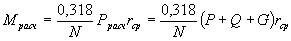 где п - число площадок, на которое разбивается прямоугольник, равновеликий площади отпечатка. Временная нагрузка на звено трубы определяется путем вычисления объемной эпюры напряжений по плоскости горизонтальной проекции трубы. 5.12. Расчетная нагрузка на звено трубы длиной 1 м определяется суммированием постоянной и временной нагрузок: Pрасч = P + Q + G, (65) где Р - временная нагрузка на трубу от действия колес опоры самолета; Q - постоянная нагрузка на трубу от засылки грунта; G - постоянная нагрузка от собственного веса трубы. 5.13. Расчетный изгибающий момент в стенках трубы Мрасч следует определять в соответствии с полученной полной расчетной нагрузкой по формулам: для хрупких труб (бетонные, асбестоцементные, керамические)