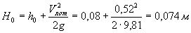 где Qk - водозахватывающая способности дождеприемника; Lф - длина водосливного фронта по периметру решетки; h0 - глубина потока перед решеткой; ωр - площадь всей решетки; ωотв - площадь отверстий решетки; С - ширина дождеприемника или тальвежного колодца; g - ускорение силы тяжести. Полный напор потока перед решеткой Н0 равен